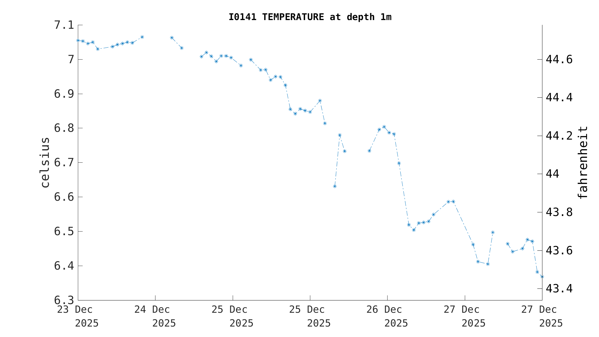 | Water Temperature (1m) | 6.4 C (43.5 F) | Dec 26 10:30 PM |
