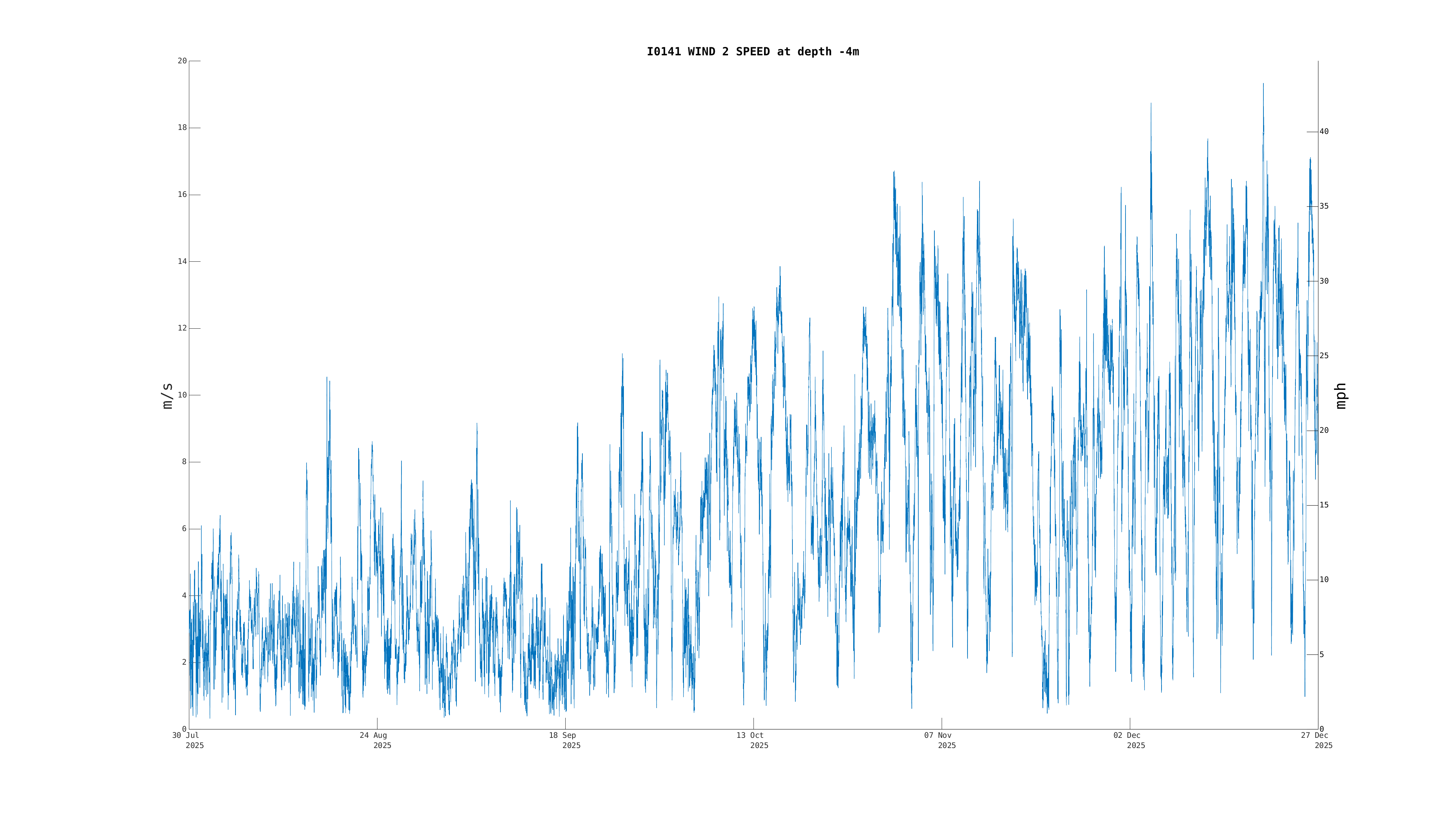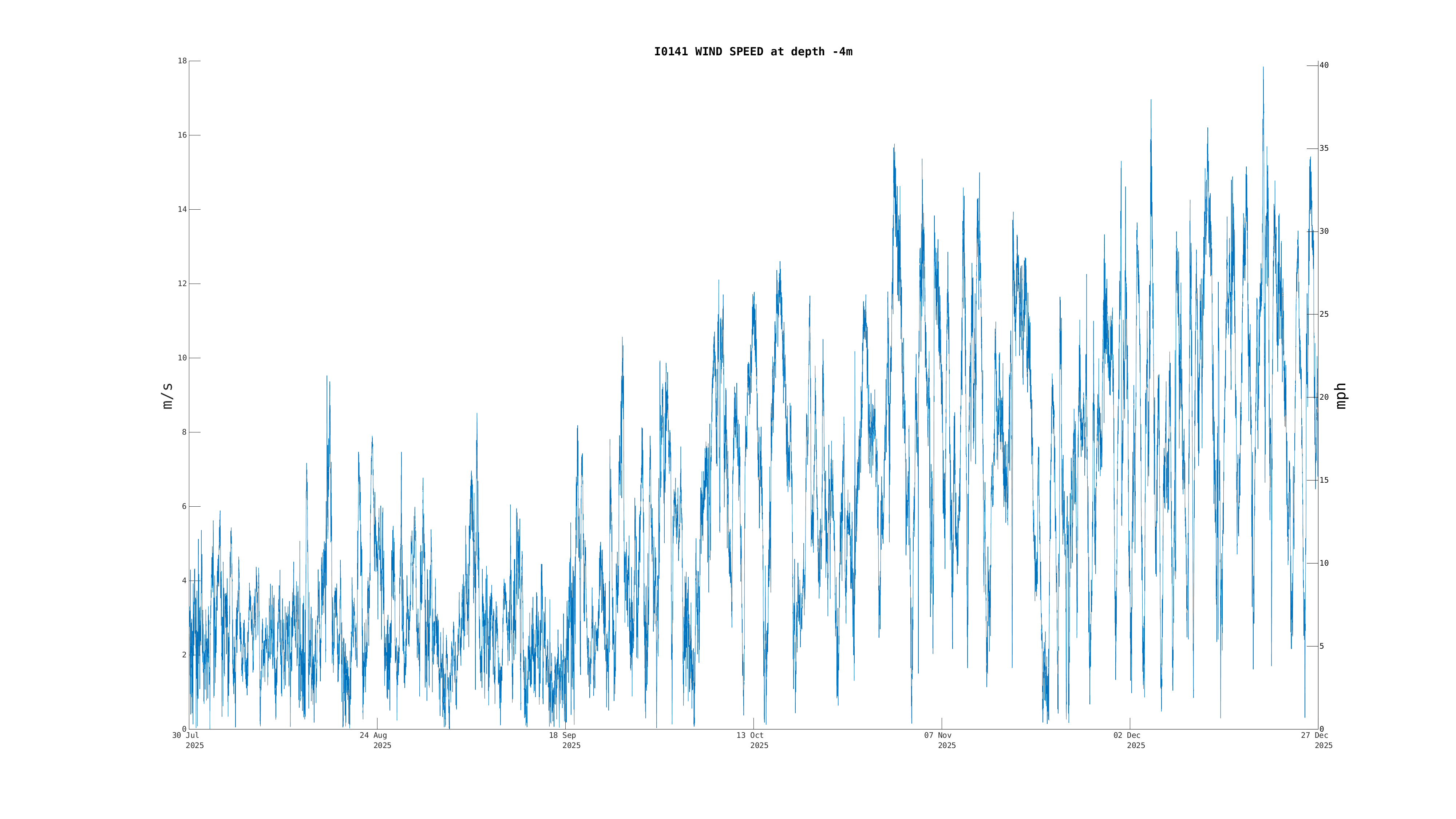 | Wind 2 Speed [Primary] (-4m) | 8.5 m/s (19 mph, 17 kts) | Dec 26 10:30 PM |