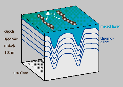 slicks = bandas o estrías de diferente color o rugosidad mixed layer = capa de mezcla |