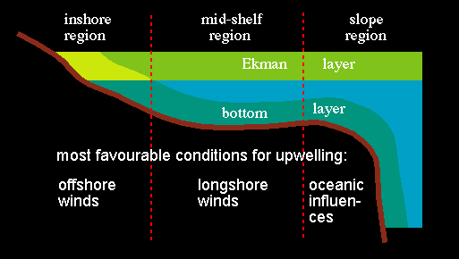 Zonation of the coastal ocean into regions with different upwelling dynamics.