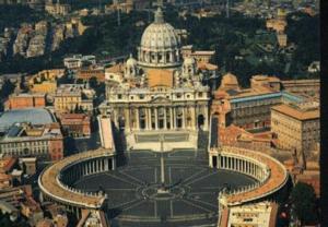 The New Saint Peter's Basilica was completed in 1615 under Pope Paul V. During 1655 - 1667 the architect Gian Lorenzo Bernini designed and built an elliptical piazza in front of the church, which gives the building majestic proportions.