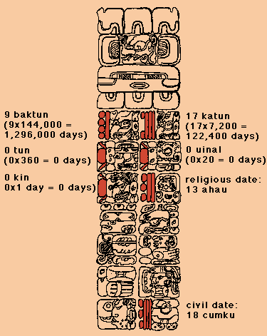 The date (1,418,400 days since 12 August 3113 BC = 24 January 771 AD) is given in the secular and sacred calendars and as a day count from the beginning of the Mayan calendar. The sketch replaces the interpretation of Lecture 5 with the accurate day count.