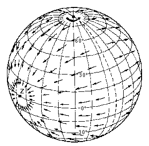 The centrifugal force is the same everywhere on the earth's surface. The gravitational force is largest under the sun (at the zenith Z) and smallest at the point opposite (the nadir). The difference between F and G is thus directed away from the earth under both the zenith and the nadir. This produces two tidal bulges or high tides and a line of low tide inbetween. Continents and ocean topography modify the tidal pattern but do not change the principle.