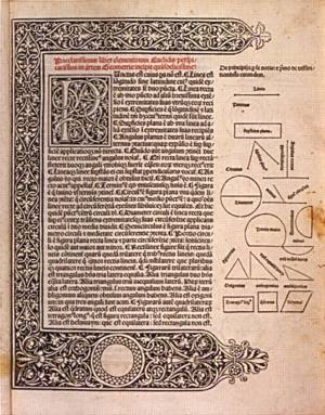 Folio A2r from Euclid's Elements of Geometry printed by Erhard Ratdolt in Venice in 1482, only 27 years after Johannes Gutenberg had produced the first printed book. (Special Collections, Glasgow University Library, Sp Coll BD7-c.5)
