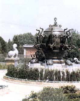 Chang Heng's best known invention is a seismograph, or more accurately a seismoscope, since it did not produce a graph of the earthquake but indicated in which direction it occurred, which stood in the imperial capital Louyang. It consisted of a main body in the shape of an urn made of bronze, which carried eight dragon heads. Each head held a copper ball in its mouth. Eight frogs were squatting under each head, ready to catch a ball, should it fall.