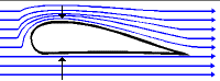 If the fluid flow is visualized by streamlines (as in the first diagram) it is seen that the pressure is large where the streamlines are far apart and small where they are close together. The third diagram applies this principle to a cross-section through the wing of an aircraft. Below the wind the air streams past undisturbed. Above the wing the streamlines are compressed. As a result the air pressure is larger underneath the wing than above it, giving rise to a lifting force.