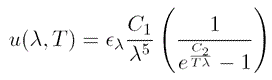 where u is the emission intensity and el the emissivity; C1 and C2 are constants, T the absolute temperature of the black body and l the wavelength. The total emitted energy (the area under the curve) decreases with the fourth power of the absolute temperature.