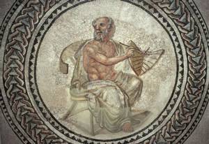 "Wherefore they (the Syrians) reverence the fish as of the same origin and the same family as man, holding a more reasonable philosophy than that of Anaximandros; for he declares, not that fishes and men were generated at the same time, but that at first men were generated in the form of fishes, and that growing up as sharks do till they were able to help themselves, they then came forth on the dry ground." (Plut. Symp. viii. 730 E.) (1)